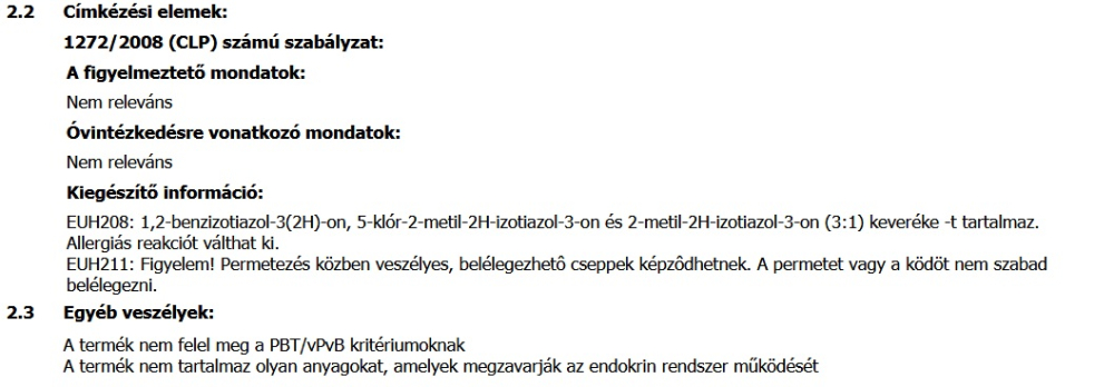 Száradási idő: 4-6 óra normál viszonyoknál (t = +23°C-tól 25°C-ig, a relatív levegő nedvesség= 50-60%).