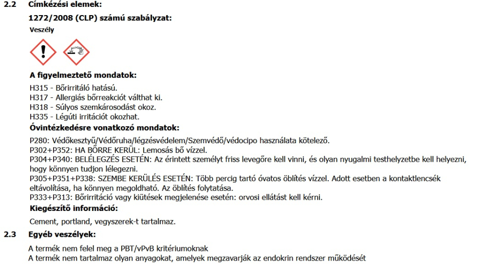 Anyagszükséglet: kb. 3-3.5kg/m2, az alapfelülettől és a vastagságtól függően.