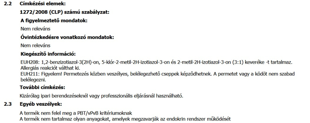 Száradási idő: 4-6 óra normál viszonyoknál (t = +23°C-tól 25°C-ig, a relatív levegő nedvesség= 50-60%).