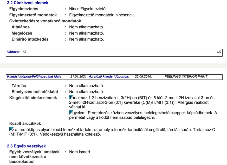 Festési körülmények Minden festendő felület legyen száraz, a levegő hőmérséklete legalább +5ºC legyen és a levegő relatív páratartalma pedig legyen 80% alatt. Előkészítés A festendő felület legyen száraz, tiszta és minden szennyeződéstől mentes Festés Használat előtt alaposan keverje fel a festéket. Vigyen fel 2 réteg Feelings |