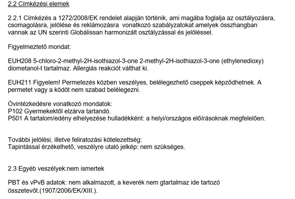 Hígíthatóság: a termék alapos felkeverés után felhordásra kész