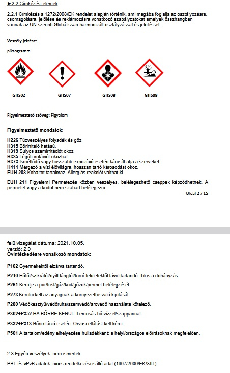 Hígíthatóság: szükség esetén nitrohígítóval