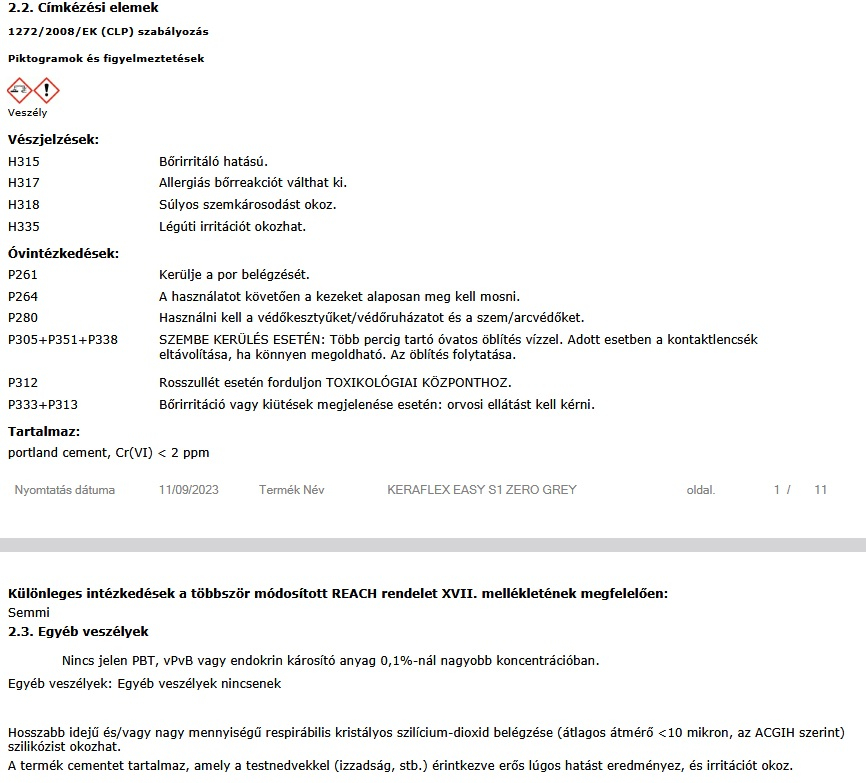 - EMICODE: EC1 R Plus – nagyon alacsony kibocsátású.