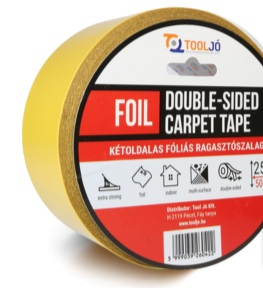 A kétoldalas fóliás ragasztószalag főbb tulajdonságai: acryl ragasztóanyag, extra erős, fóliás kétoldalas szőnyegragasztó, többféle felületen alkalmazható, beltéri használatra.