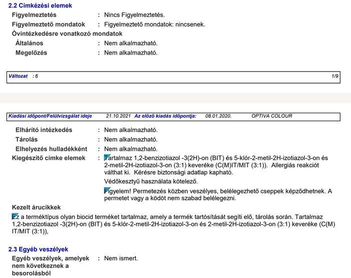 A lehetséges színeltérések elkerülése végett biztosítson az egész felületre elegendő, azonos gyártási számú festéket.