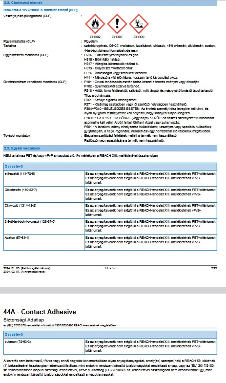 - Szintetikus anyagok ragasztására pl. fa, fém, gumi, bőr, műbőr, parafa stb.