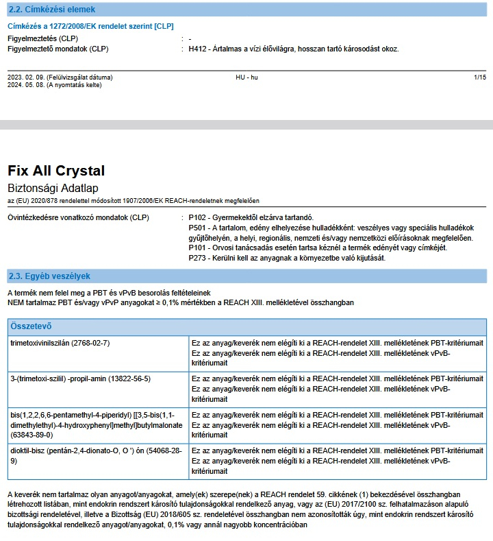 - Oldószer-, isocyanát-, és szilikon mentes