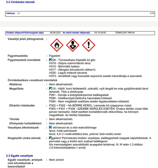 Kétkomponensű, módosított gyantájú epoxi festék. Erős kopásnak, víz alatti igénybevételnek és vegyszereknek jól ellenálló filmréteget képez. Acél-, alumínium-, horganyzott-, és beton felületek alapozó és átvonó-bevonata mechanikai és kémiai hatásnak kitett bel- és kültérben, föld és víz alatti építményeken. Ajánlott például csarnokok vázának, csőhidak, szállítóeszközök és egyéb acélszerkezetek, berendezések festésére. Alkalmas betonfelületek pára- és gőzlecsapódás elleni védőfestésére. A Finn Műszaki Tudományos Intézet (VTT) szakmai nyilatkozata rendelkezésre áll.