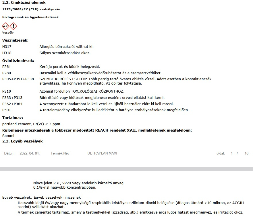 Keverési arány: 18-19 rész víz 100 tömegrész Ultraplan Maxi-hoz.